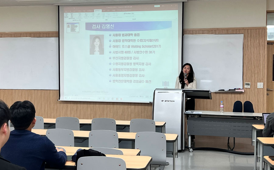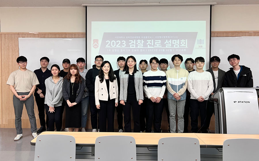본교는 지난 5월 2일(화) 및 5월 11일(목) 교내 검찰 또는 재판연구원 임용희망자를 대상으로 검찰 진로설명회 및 재판연구원 제도 설명회를 진행했다. 각 행사에서는 본교 ‘검찰실무’ 수업의 담당 교수인 김영신 검사와 ‘민사재판실무’ 수업의 담당 교수인 김동욱 판사가 학생들에게 검찰과 재판연구원의 공식적인 임용절차를 소개하는 시간을 가졌다. 더불어 차후 법조직역에서 검사와 법관이 되기를 희망하는 학생들에게 공부방법과 시험에 대한 정보와 조언을 아끼지 않았다. 행사를 담당한 김영신 검사와 김동욱 판사는 교내에서 검찰과 재판연구원 임용에 필요한 실무과목을 가르치고 있기 때문에 해당 수업을 수강하거나 수강할 예정인 학생들에게는 훨씬 실질적인 도움이 되었다.